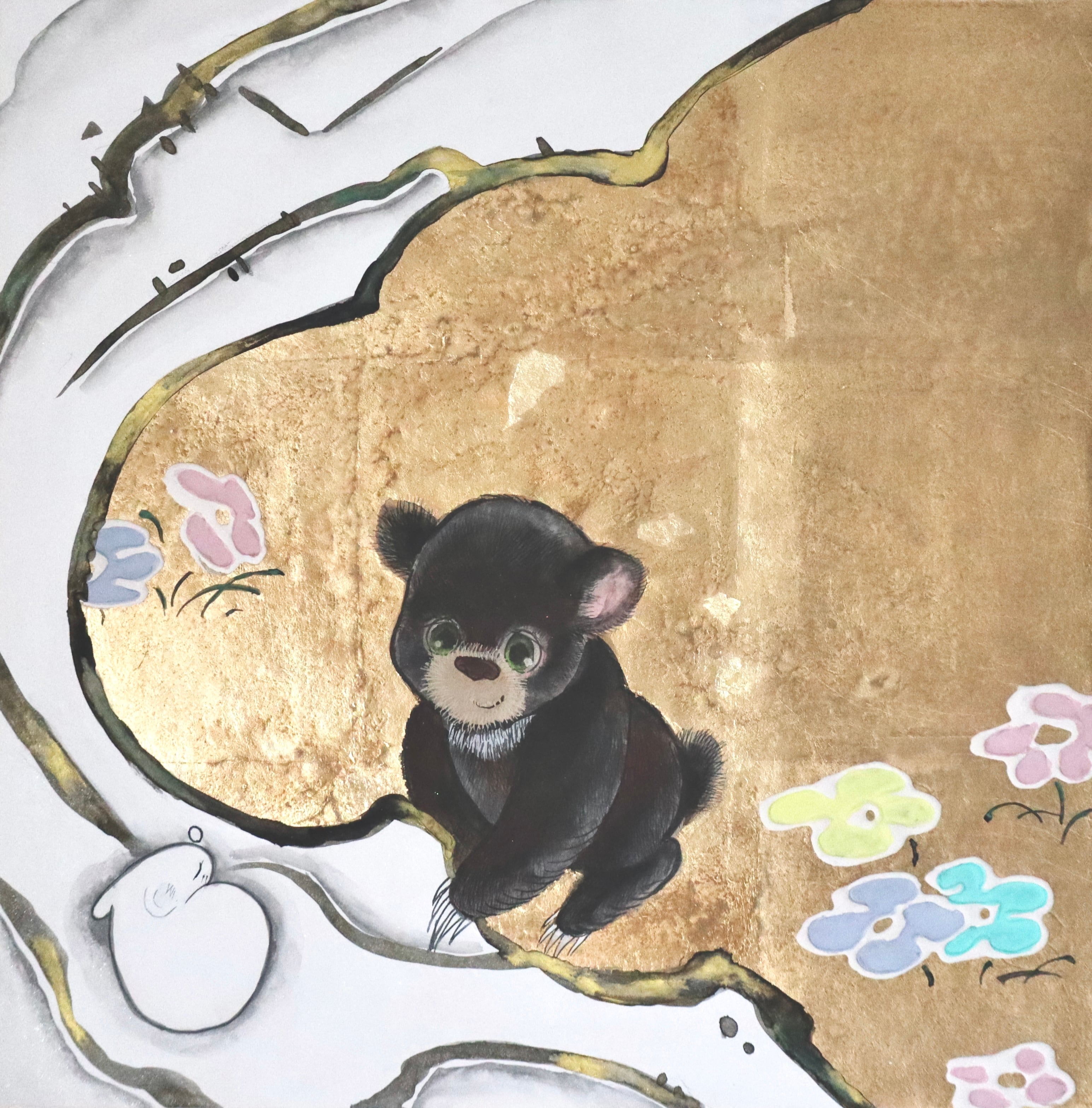 *お届けは12月下旬を予定しております *箱に入れてお届けします。 *サイズ:333×333mm *麻紙、洋金箔、水干、岩絵具 *2025年制作